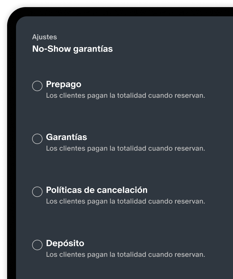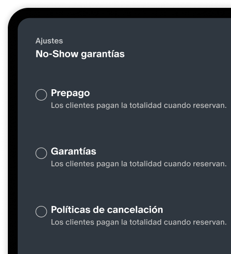 Usa una combinación de prepagos, garantías y políticas de cancelación personalizadas a menús de degustación, fechas y horas y número de comensales para garantizar que la mesa no se va quedar vacía.