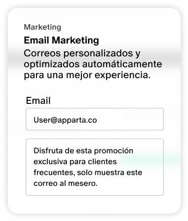 Envía campañas de SMS, correos y Whatsapp ilimitados. Crea flujos automáticas de correos y SMS cuando tus comensales cumplan años, cumplan aniversarios, esten inactivos, entre muchos otros. Ten tu propia base de datos conectada y sincronizada en tiempo real.